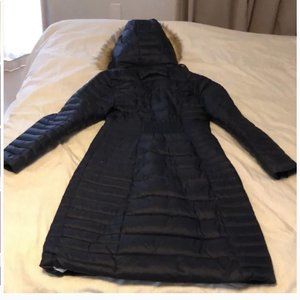 kate spade Faux Fur Trim Hooded Puffer Coat jacket deep navy size xs like new no tags