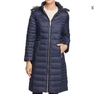 kate spade Faux Fur Trim Hooded Puffer Coat jacket deep navy size xs like new no tags