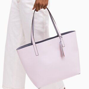 tote features removable tassel and reversible design. this lightweight over-the-shoulder bag flip the tote to the color that coordinates with your outfit for that day. with its open-top you can just get in and out quickly with one hand and not fiddle around with compartments that won't open without two hands.