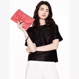 kate spade On Purpose Pink Flamingo Canvas Bow Clutch Wristlet NWOT