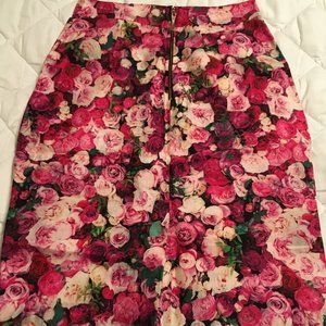 such a gorgeous pink green white rose floral flower print skirt! great for spring and summer! only selling because it was too small for me :( but my loss is your gain!
