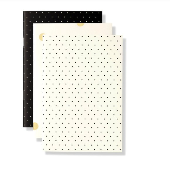 Triple your productivity in style with the Black Dot Triple Notebook Set from kate spade NEW YORK. These three lined notebooks (one in black with white dots, one in white with black dots, and one in white with gold spots) will make it easy to take notes, keep your tasks under control, and remind yourself of appointments, all in a sleek, beautifully designed package.