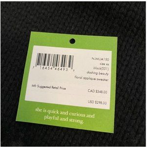 kate spade dashing beauty black floral applique sweater top shirt size xs brand new with tags