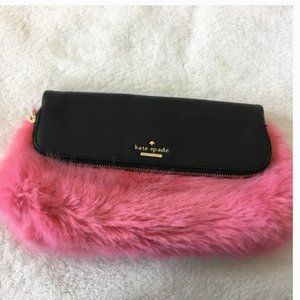 kate spade evening belles steffe faux fur pink black leather clutch purse bag like new no tags
