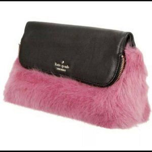 kate spade evening belles steffe faux fur pink black leather clutch purse bag like new no tags