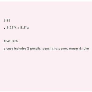 case includes 2 pencils, pencil sharpener, eraser & ruler