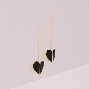 kate spade heritage spade linear earrings black gold heart like new no tags