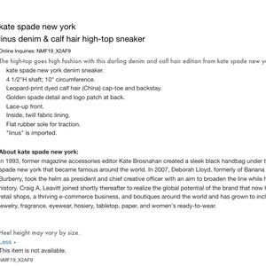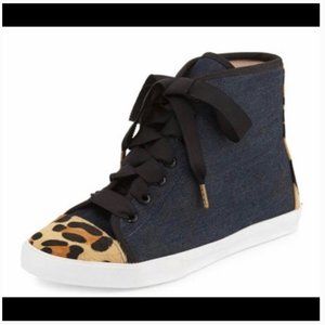 kate spade linus denim & calf hair high-top sneaker shoe size 6.5 like new no tags