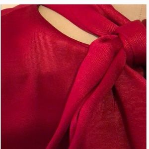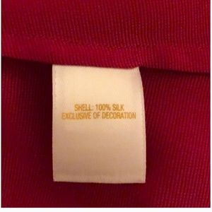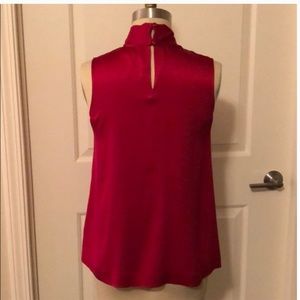 100% Silk faille. Size 2 new without tags. Sleeveless blouse with fabric bow tie detail at neck, can be styled various different ways. Center back closure at neck with self fabric covered buttons. Freshly dry cleaned and never worn.