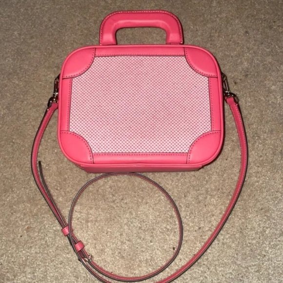 kate spade pink tweed multi Traveler Trunk Crossbody Bag purse novelty shape like new no tags