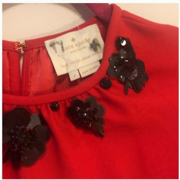 kate spade red bell sleeve black sequin beading shift dress size 4 like new no tags/never worn
