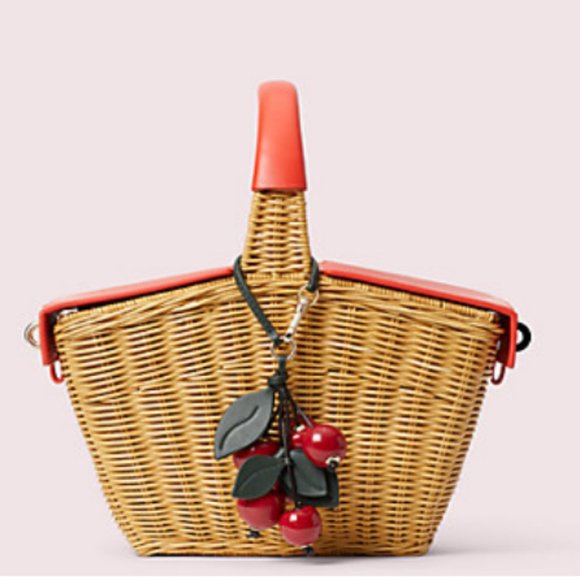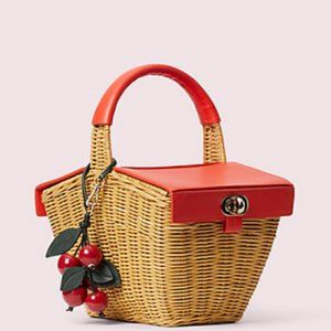 kate spade redish orange picnic 3d wicker picnic basket with cherries bag purse tote new no tags