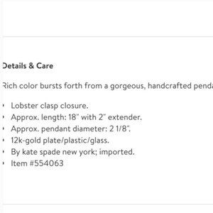 kate spade solarium pendant necklace nwot