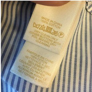 brand new without tags size xs! never ended up wearing. beautiful light weight collared shirt blouse top blue white striped pattern with silver buttons going down the front. makes a great work top all year round---perfect for layering under sweaters or sleeveless dresses too! (colour is clearest in the first photo)