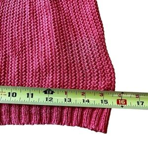 In excellent pre-owned condition, lovel shade of coral, loose weave, size medium. Tags missing. See measurements. 3/4 sleeves, full button up front, v-neck, slightly stretchy.