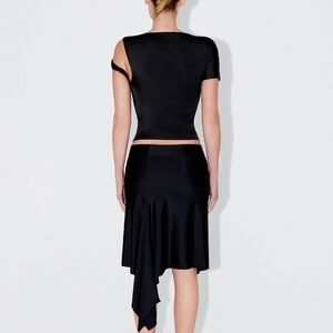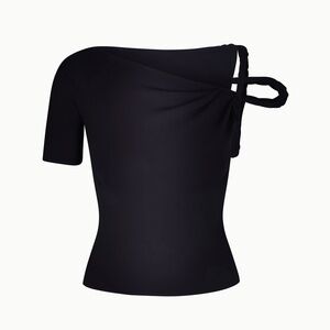 A fitted top with Asymmetrical off the shoulder twist detail. Made from sleek stretch and ultra flexible fabric with a silky soft feel.