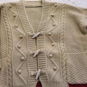Add a touch of personality to your everyday wardrobe with this stylish toggle-button knit cardigan. Featuring classic horn-style toggle closures and a cozy open-front design, this piece blends vintage charm with modern flair.