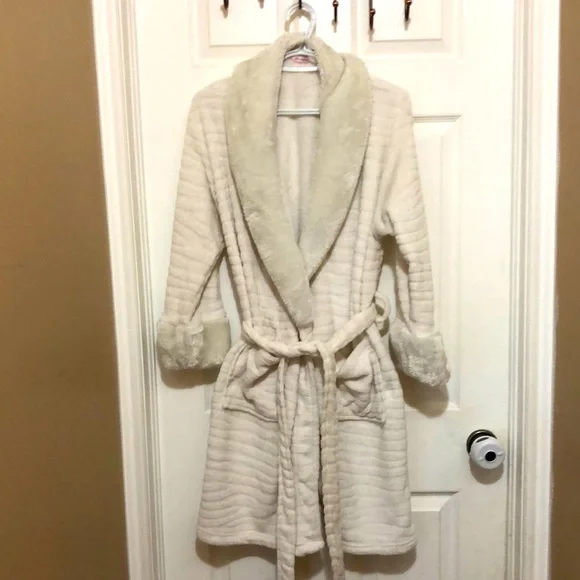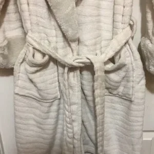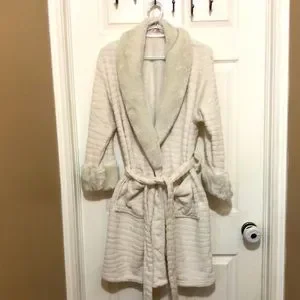 La vie en rose housecoat, size small. In excellent condition with the exception of one pocket that is slightly detached at the top, can be seen in last picture.