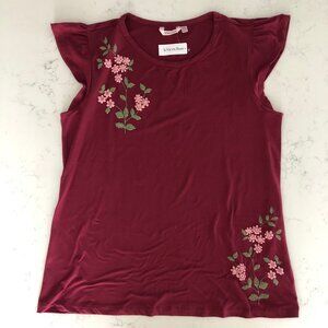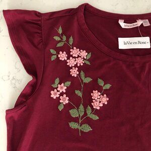 la Vie en Rose Scoop Neck Gathered Cap Sleeve PJ Top Burgundy + Pink Sz M NWT