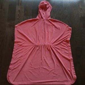 salmon pink poncho style dress with a hood
