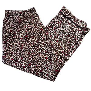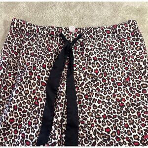 laSenza Pajamas Womens Leopard Print Button Up Lg Black White Pink Lace Trim