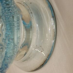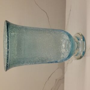 #597 Large glass vase light blue bubbles 10"h x 6"diam.