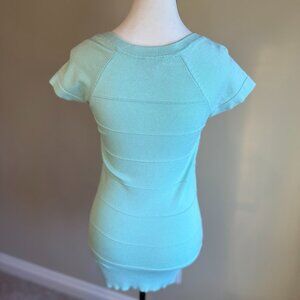 le chateau Top / Sweater Dress long knitted, squared neck, cap sleeve, green SzM