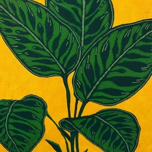 green leaves painted on vivid yellow back ground, acrylic on canvas painted in 2007
