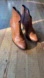 Sz 9 Cognac Booties with Wood Heel and beautiful stitch details