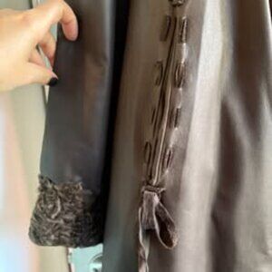 Élégant manteau vintage réversible – fourrure karakul & cuir chocolat