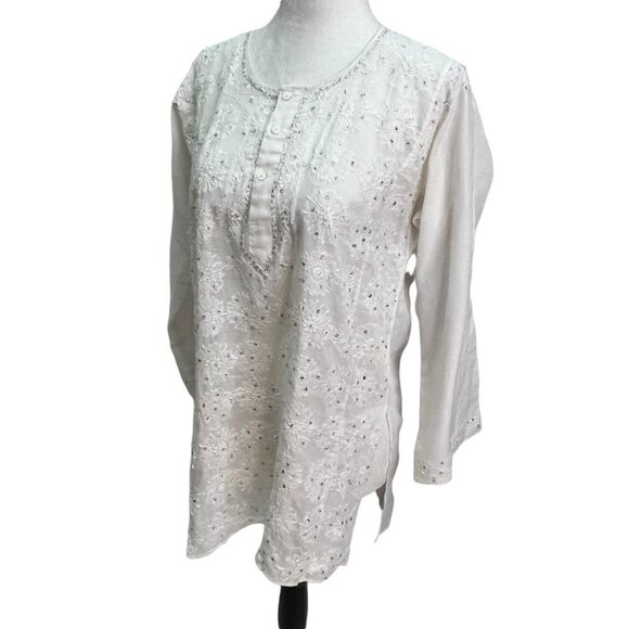 lightweight Cotton White Embroidered Tunic Top Size M