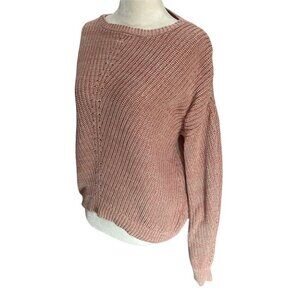 line the Label Drop Shoulder 100% Cotton Pink Pullover Sweater Size XS