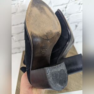 These are classic black leather booties with a kind of western shape. The leather is really soft and matte, almost like suede. Good used condition. Im a size 7 these feel a little tight for me, even though I wear a 37 in this brand. I'm giving this a 6.5 fit. 3.5" heel