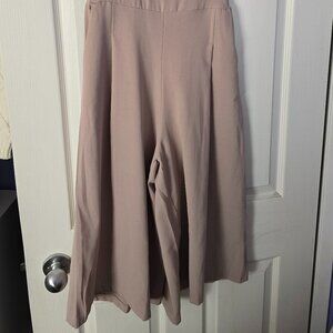 adjustable straps beige culotte jumpsuit with pockets, purchased as one size/no tag. gently used, has a small hole in the waistband as pictured. great transitional piece as it pairs well with blouses, tshirts, or turtlenecks.