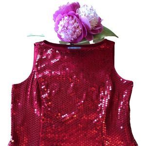 liz Claiborne Red Sequinned Sleeveless Top EUC