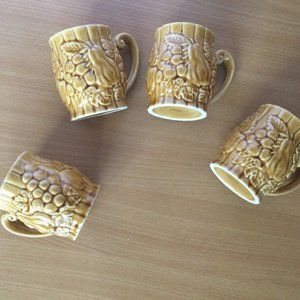 lot of 4 Vintage Japanese Coffee mugs marked Japan raised fruits design
