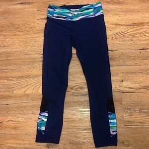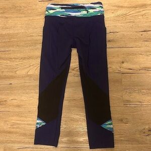 lululemon Pace Rival Mesh Crop Luxtreme Hero Blue Seven Wonders Multi 29” Sz 4