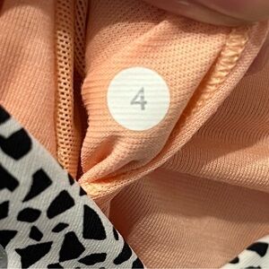 Chic black and white design. Perfect for active wear. Offers great support. Two pockets on the sides for easy stashing of small items (keys, cards) during your run.