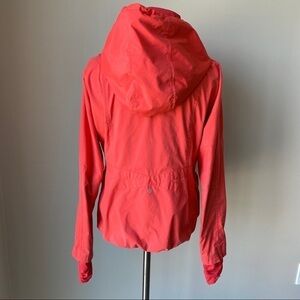 lululemon Red Orange Light Hooded Jacket Size 8 Ruffle Trim Thumb Holes
