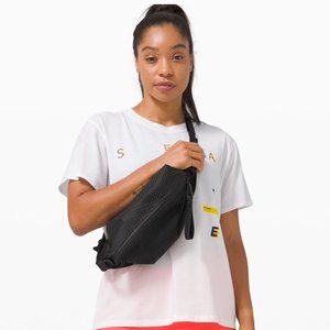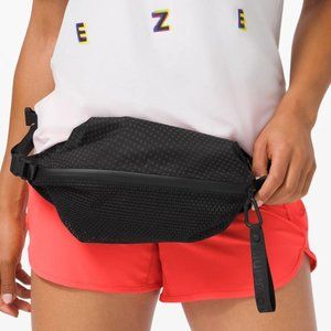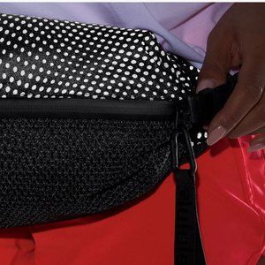 Sleek black belt bag. Perfect for on-the-go. Adjustable strap. Durable material.