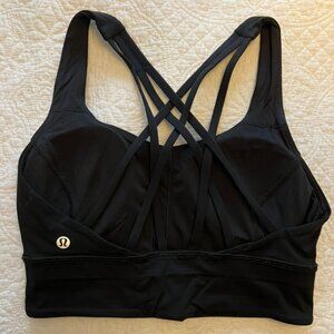 Stylish black sports bra with criss-cross straps. Perfect for workouts.