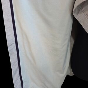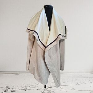 Elegant cream and gray cardigan. Features a draped open front. Perfect for layering. * possibly a snap missing, in pictures Length 29" Sleeves 26"