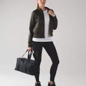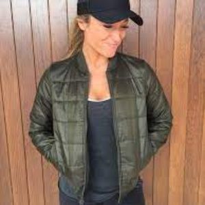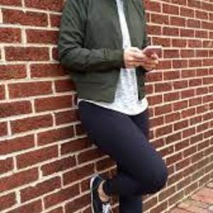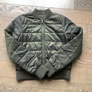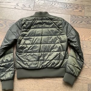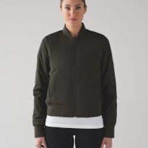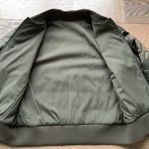Stylish olive bomber jacket. Lightweight and versatile. Perfect for casual wear.