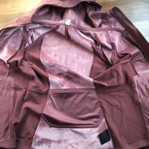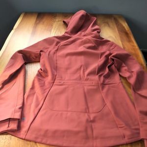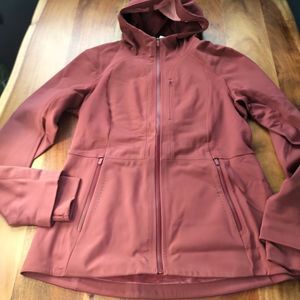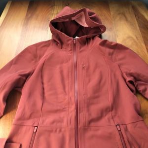 Stylish red jacket with a sleek design. Features a comfortable fit and hood. Perfect for active wear.