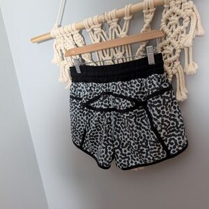 Stylish lululemon athletica shorts. Black waistband. Gray leopard print. Comfortable fit.