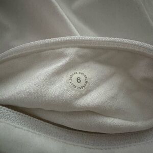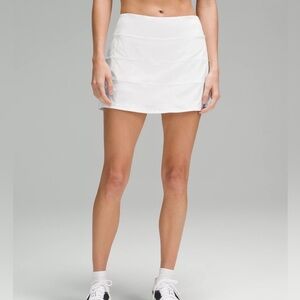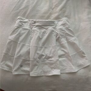 Lululemon Pace Rival Skirt White. Size 6. Drawstring waistband and build in shorts with pockets. Only worn a few times, still in good condition.