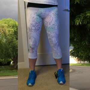 Rare lululemon athletica white floral print crop leggings. Size 8. Excellent condition. Have been worn less than 5 times. Preowned with care.