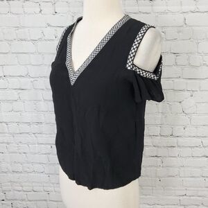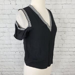 maje Cold Shoulder V-Neck Top Black White 1 S