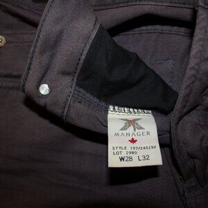 80% cotton, 20% polyester, like new condition, slightly bell bottom like