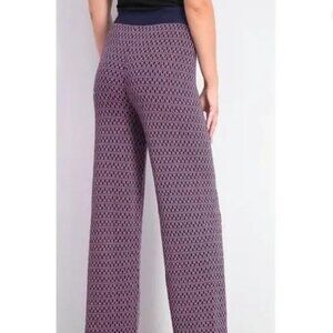 Mango Premium purple/burgundy/pink/navy patterned flowy wide leg knit lounge pants